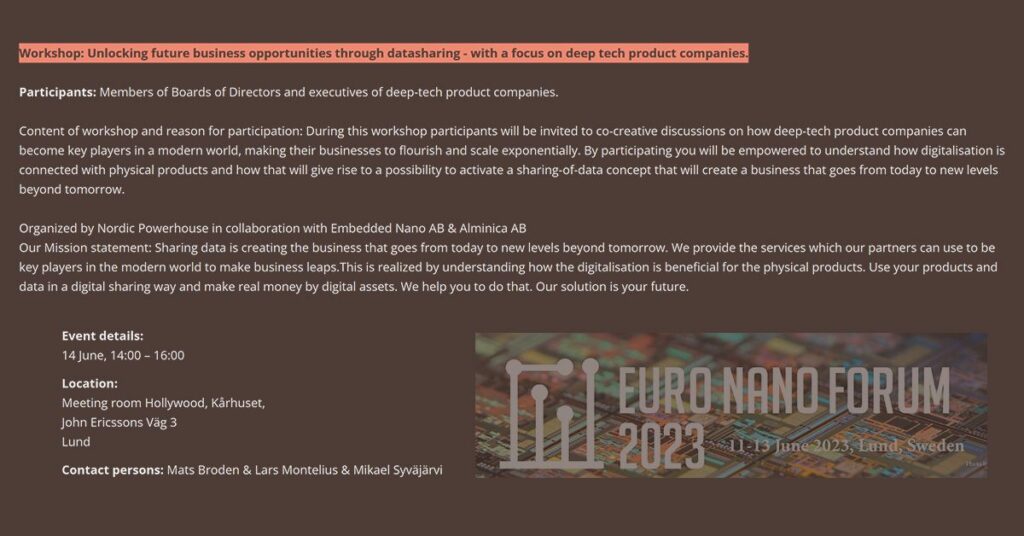 Workshop at Nano Euro forum: Unlocking future business opportunities through datasharing – with a focus on deep tech product companies.